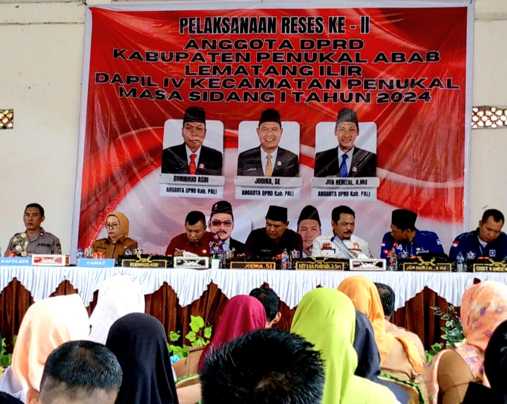 PALI |wartasumselbabel.com – Anggota DPRD Kabupaten Penukal Abab Lematang Ilir (PALI) dari Daerah Pemilihan (Dapil) 4 melaksanakan kegiatan reses ke – II  masa sidang I sebagai bentuk komitmen untuk menyerap aspirasi masyarakat secara langsung. Kegiatan ini berlangsung di Aula Kantor Camat Kecamatan Penukal, pada senin (2/12/2024)