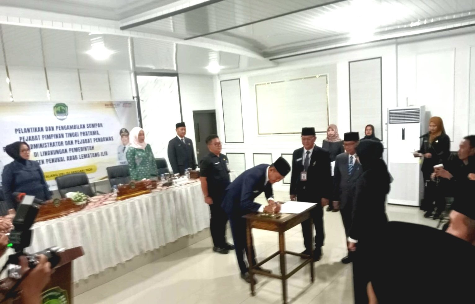PALI |WartasumselBabel .com — Mengawali tahun 2026, Bupati Penukal Abab Lematang Ilir (PALI) Asgianto resmi melantik dan mengambil sumpah/janji jabatan 32 pejabat struktural di lingkungan Pemerintah Kabupaten PALI, di Aula Kantor Bupati KM 10, Jumat (2/1/2026).