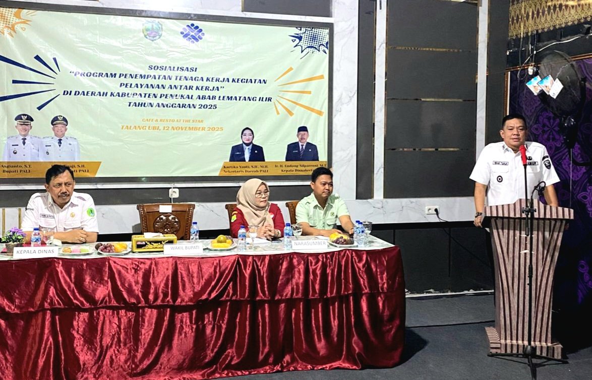 PALI | WartasumselBabel com – Pemerintah Kabupaten Penukal Abab Lematang Ilir (PALI) terus menunjukkan komitmen kuat dalam meningkatkan kualitas dan aksesibilitas ketenagakerjaan bagi masyarakat. Melalui Dinas Tenaga Kerja dan Transmigrasi (Disnakertrans), Pemkab PALI menggelar Sosialisasi Program Penempatan Tenaga Kerja dan Pelayanan Antar Kerja Terpadu yang berlangsung di Aula The Star Caffe Beracung, Pendopo Talang Ubi, Rabu (12/11/2025).
