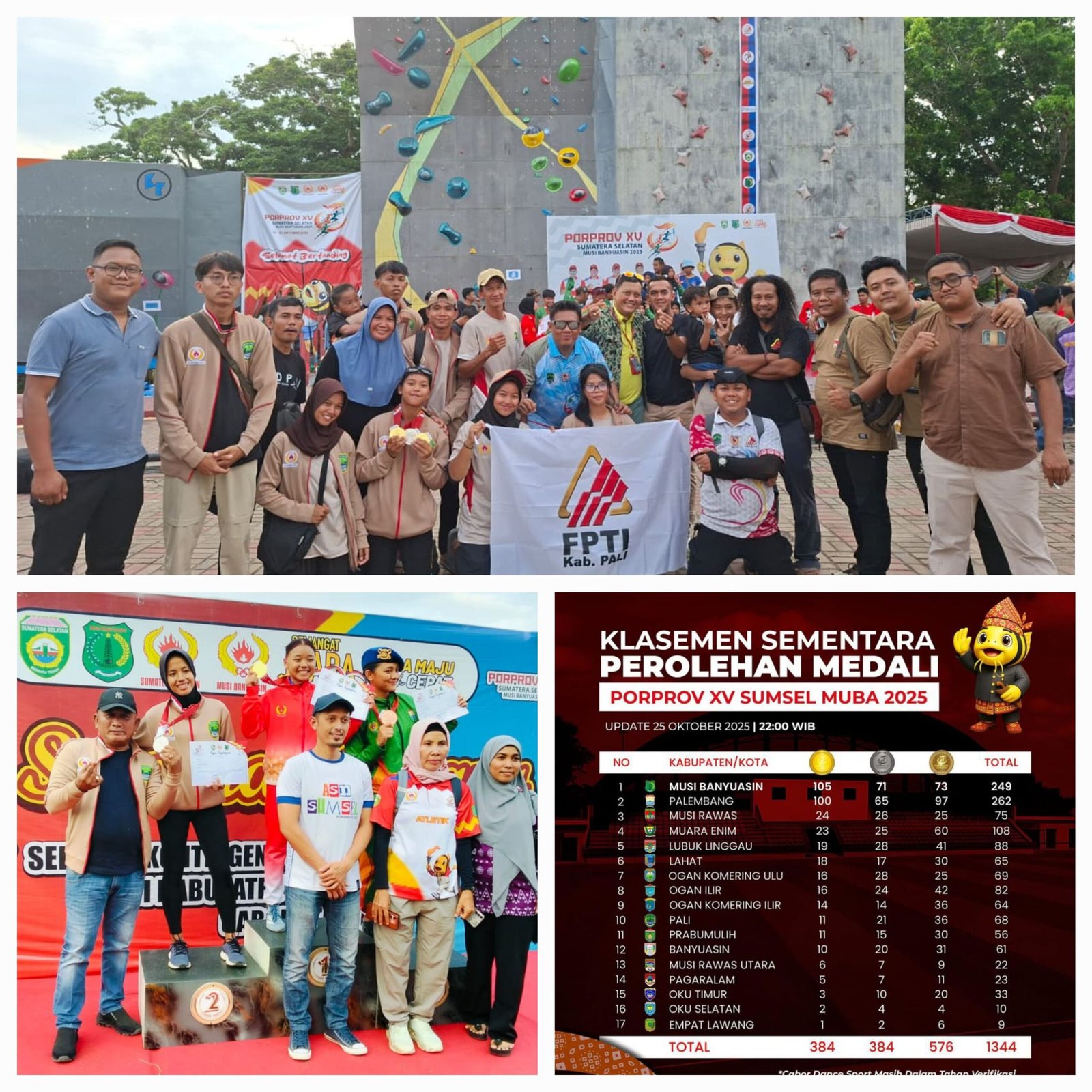 Hingga berita ini diturunkan, Kabupaten PALI berhasil naik ke peringkat 10 klasemen sementara dengan total 68 medali, terdiri dari 11 emas, 21 perak, dan 36 perunggu. Capaian ini menjadi bukti bahwa PALI terus berkembang, semakin diperhitungkan, dan siap bersaing untuk mengukir sejarah baru di Porprov Sumsel XV.