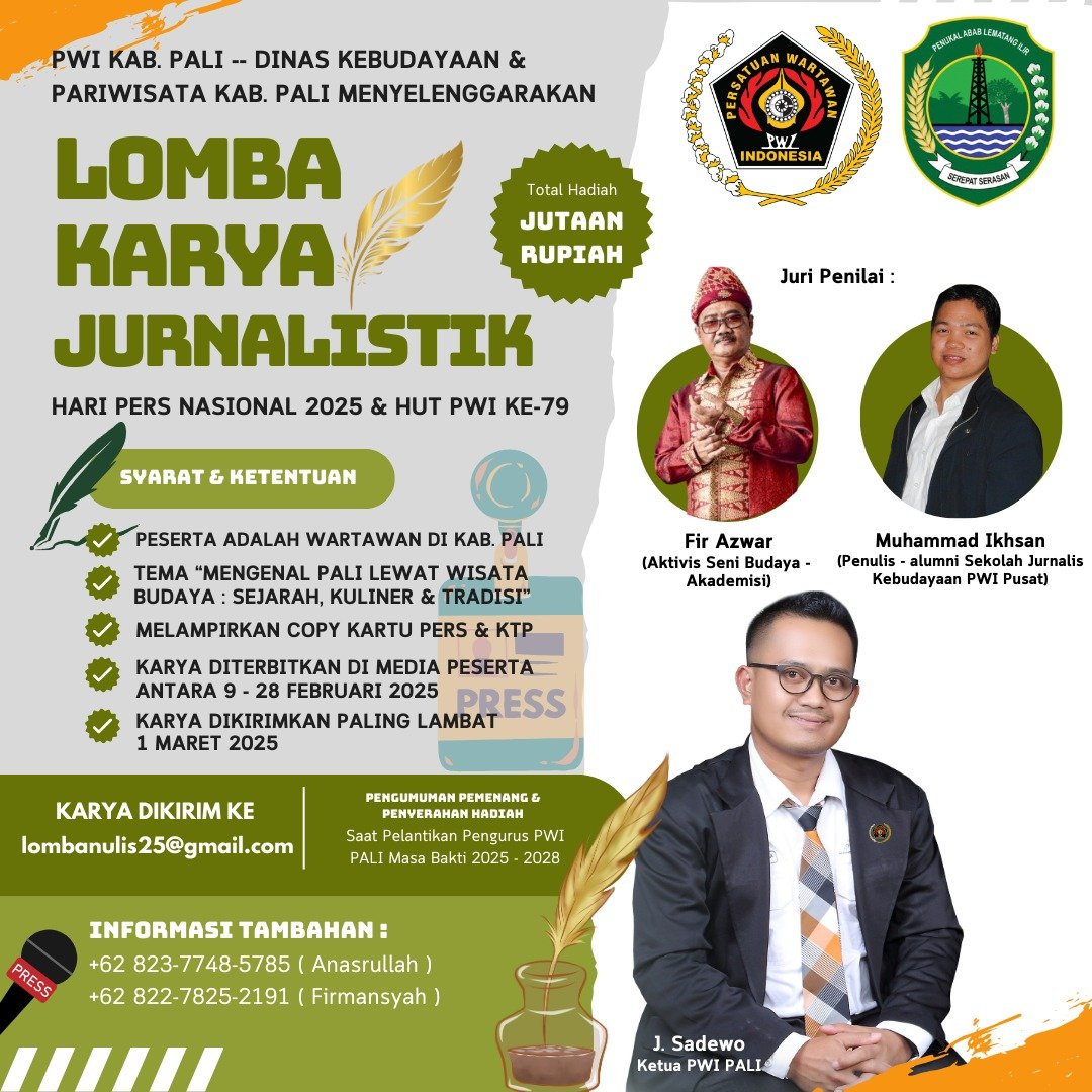Sebagai bagian dari rangkaian perayaan, PWI PALI juga mengadakan lomba karya tulis dengan tema “Mengenal PALI Lewat Wisata Budaya: Sejarah, Kuliner, dan Tradisi.” Kompetisi ini bertujuan untuk menggali potensi budaya lokal yang mungkin selama ini belum banyak terekspos serta mendorong para jurnalis untuk lebih mengenalkan keunikan Kabupaten PALI kepada masyarakat luas.