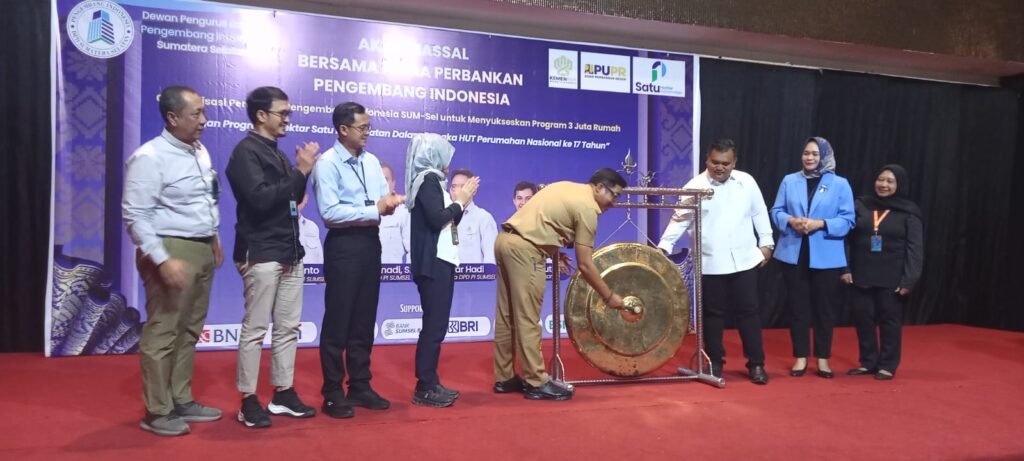Palembang, Wartasumselbabel.com – Kegiatan akad kredit massal mitra perbankan Pengembang Indonesia (PI) berlangsung sukses di Grand Attiyasa Palembang. Acara ini bertepatan dengan HUT ke-17 Perumahan Nasional (Perumnas) tahun 2025, mengusung tema “Optimalisasi Peran DPD PI Sumsel untuk Menyukseskan Program 3 Juta Rumah, dengan Program 1 Hektar 1 Kecamatan”.