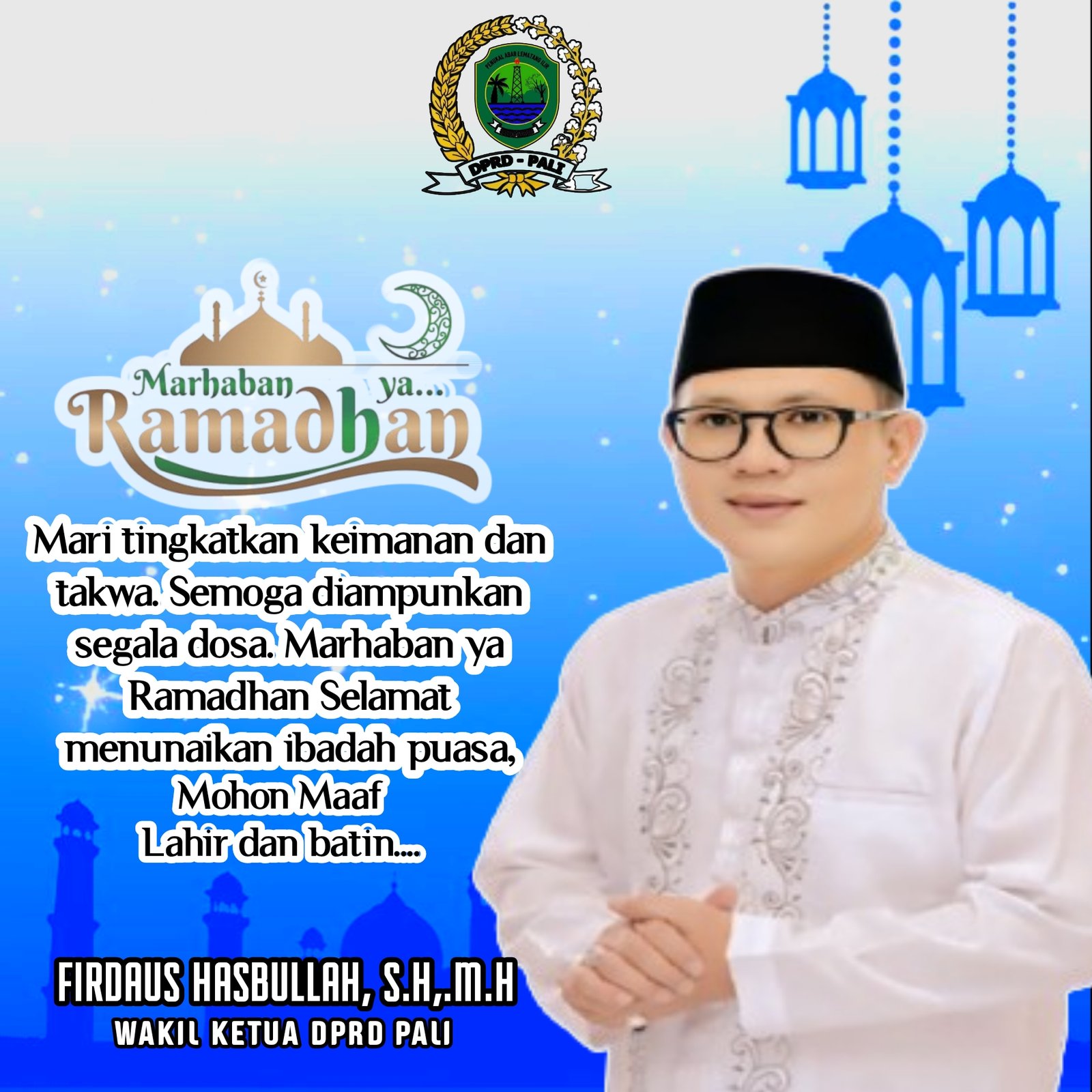 PALI |wartasumselbabel.com – Menyambut datangnya bulan suci Ramadhan, Wakil Ketua DPRD Kabupaten Penukal Abab Lematang Ilir (PALI), Firdaus Hasbullah, mengajak seluruh masyarakat untuk menjadikan bulan penuh berkah ini sebagai momentum memperbanyak ibadah dan meningkatkan kepedulian sosial.